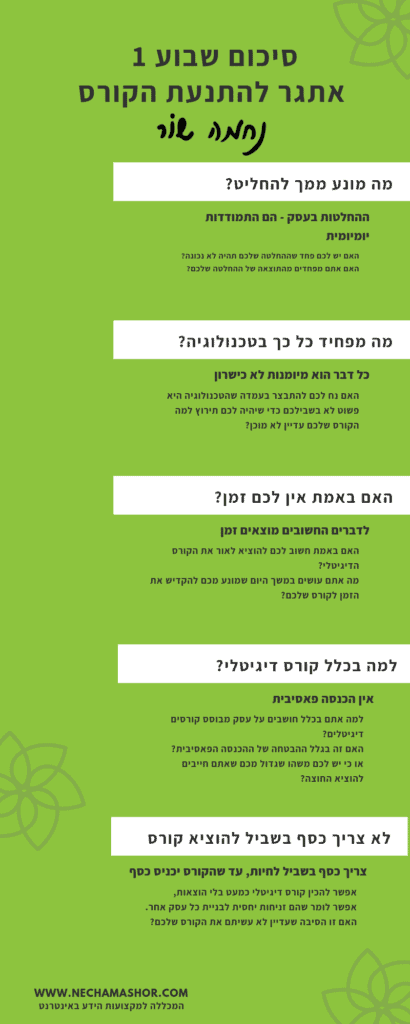 שבוע 1 – להתגבר על הפחדים והמניעים המעכבים מהיציאה לאור עם הקורס הדיגיטלי